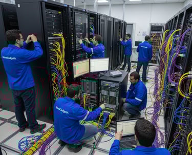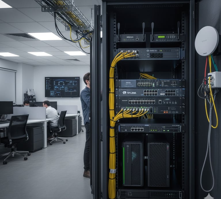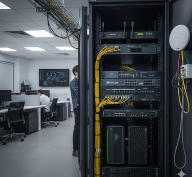 Instalação e reestruturação completa de redes com cabeamento certificado, garantindo conexões estáveis e organizadas para sua empresa.